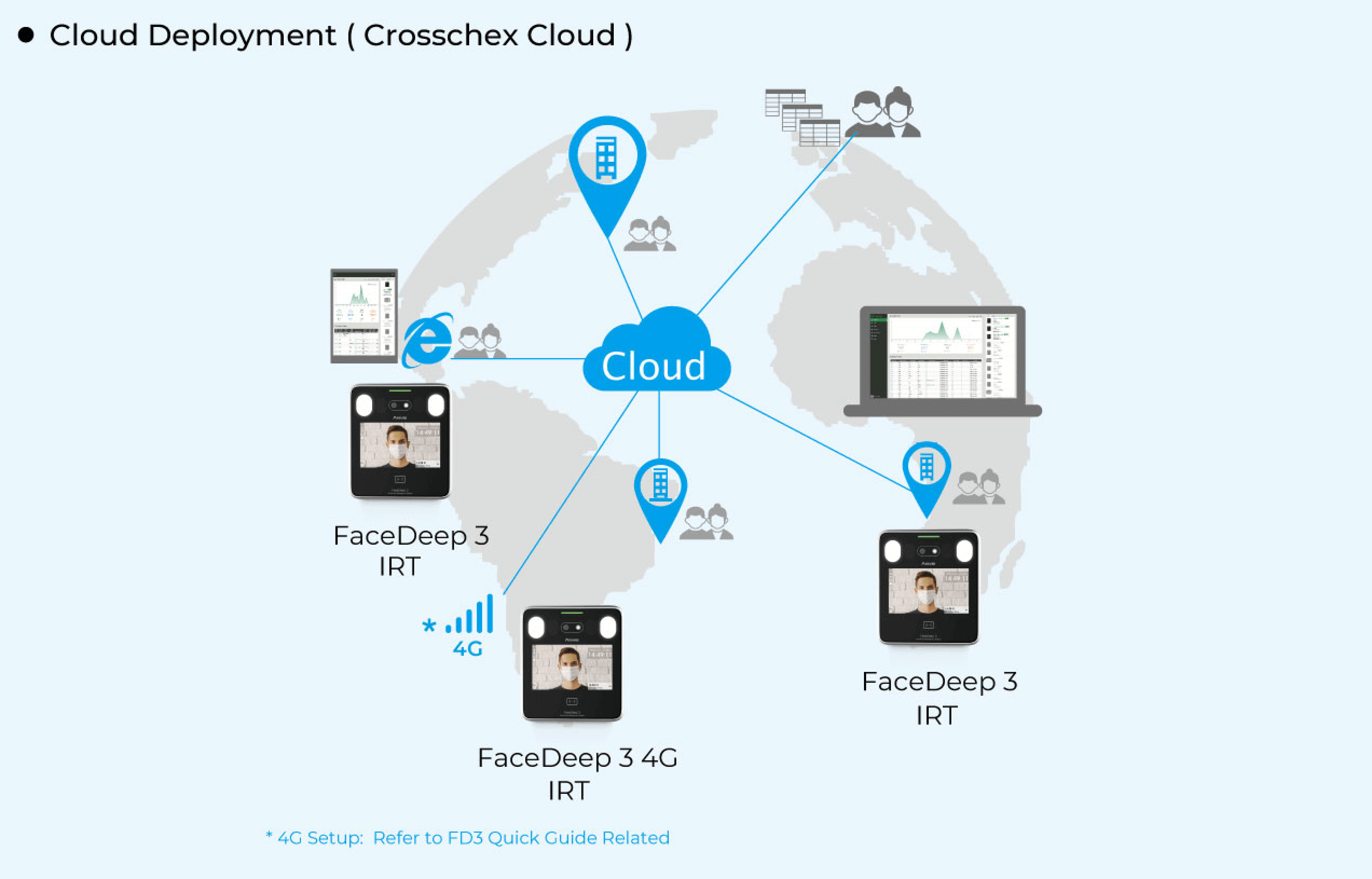 Facial recognition, body temperature detection and mask-wearing checked by the FaceDeep 3 all at once. After the scan, the information redirects to the administration via both CrossChex App and CrossChex Web software.